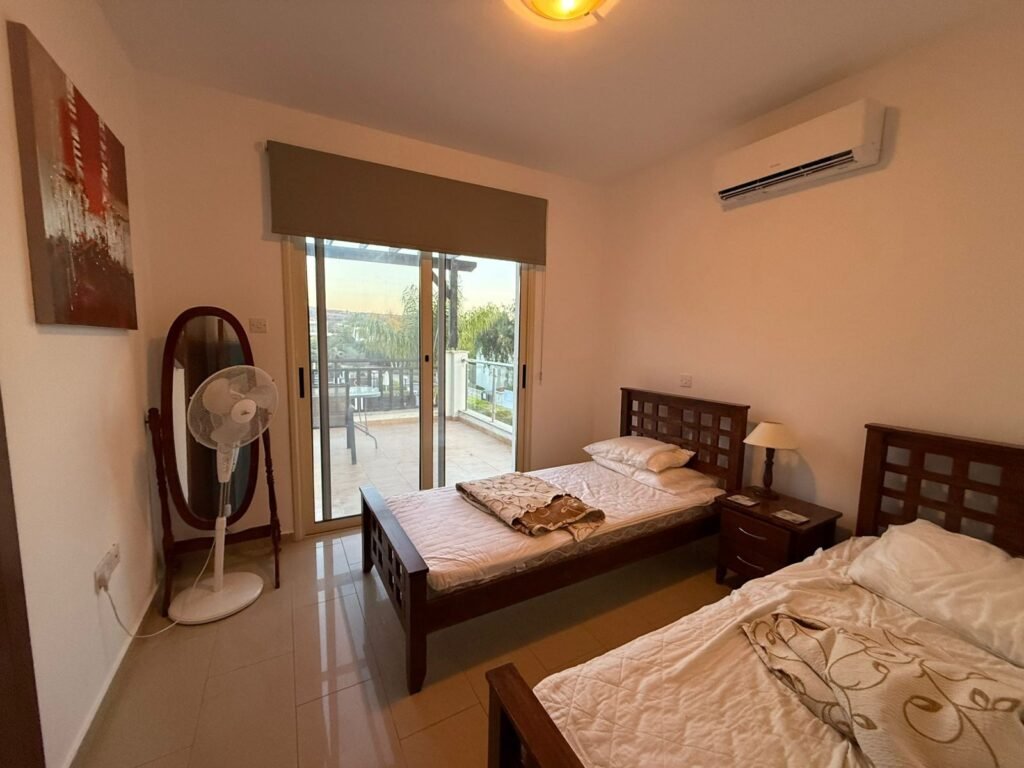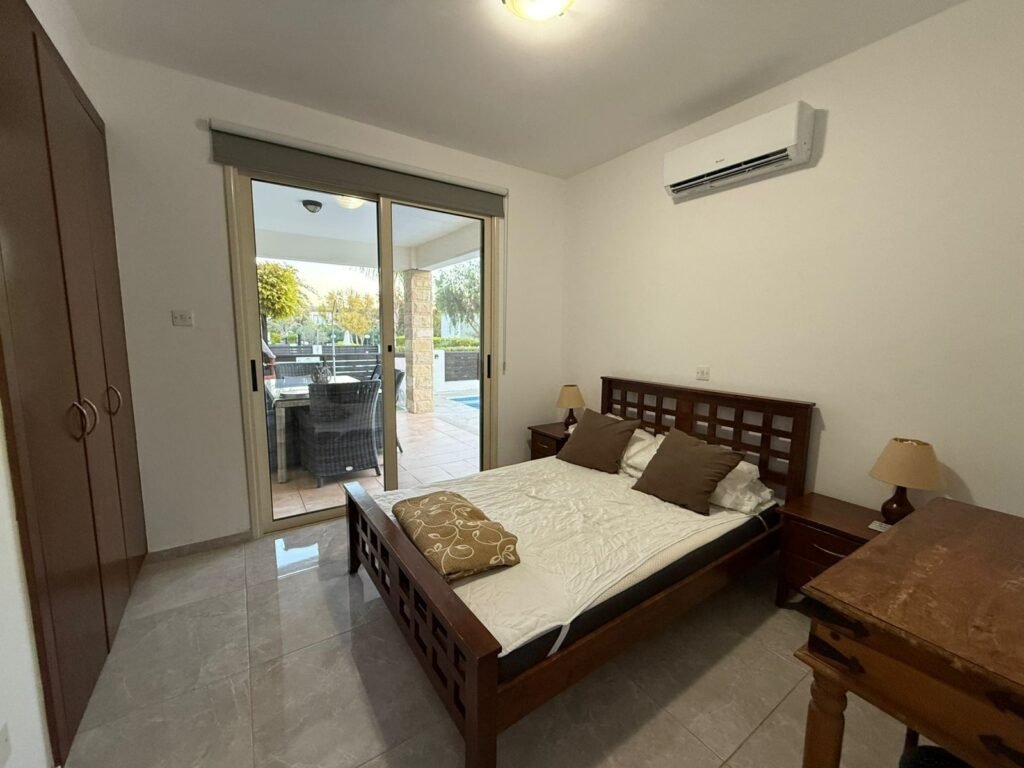 Located in the highly sought-after seaside enclave of Coral Bay, Peyia, this attractive three-bedroom detached villa offers an enviable lifestyle just a short walk from some of Paphos’s most famous sandy beaches. The property is perfectly positioned for those who value coastal convenience, with local amenities, restaurants, and the sparkling Mediterranean all within easy walking distance. Offered for sale at €450,000 (with no VAT applicable), this fully furnished residence represents a fantastic opportunity for a holiday retreat or a lucrative investment in a prime tourist location. The interior of the villa covers 150 m² and is designed for practical and comfortable living. The ground floor features a bright, open-plan layout including a fully equipped kitchen and a spacious living area. Uniquely, one of the three double bedrooms is situated on the ground floor, offering added accessibility, while a guest WC serves this level. Upstairs, the remaining bedrooms offer quiet retreats, with the master bedroom featuring access to a private balcony. The home is ready for immediate occupation, coming complete with air conditioning units throughout, electrical appliances, and a pressurized water system. The outdoor area is tailored for the Mediterranean climate, set on a 300 m² plot that maximizes space for relaxation and entertainment. A private swimming pool is the centerpiece of the yard, complemented by a dedicated shower area and a BBQ zone for al fresco dining. The property also features a storage room and private parking for two cars. With Title Deeds available and its premium location near the heart of Coral Bay, this villa is a standout choice for those seeking the quintessential Paphos beachside lifestyle. Private Garden Private Air Conditioning Solar Water