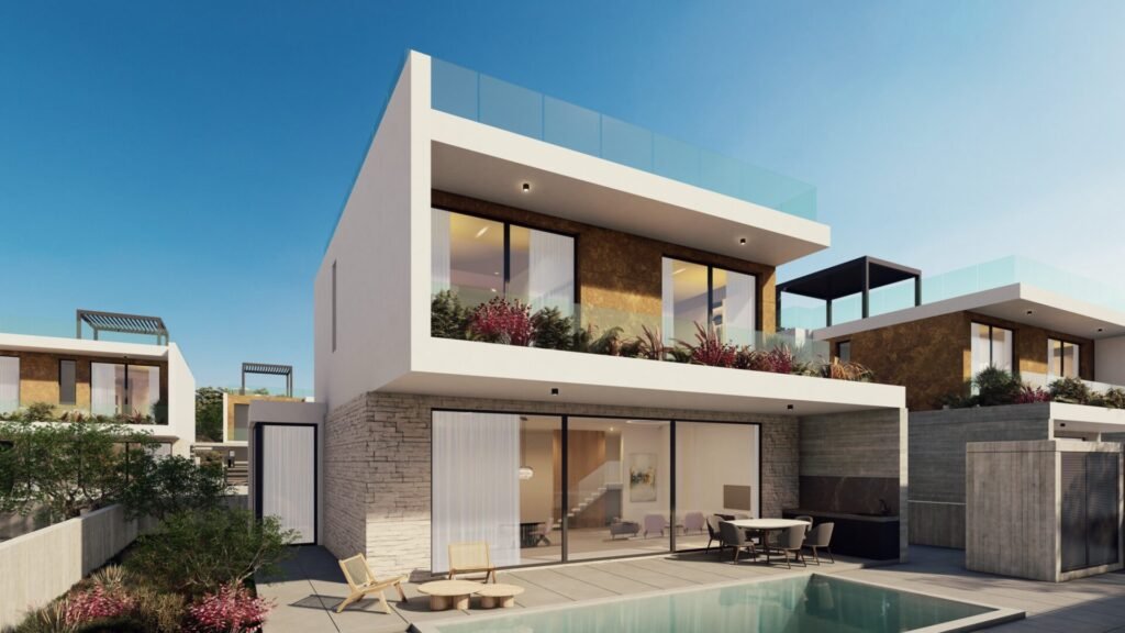 A collection of 19 three-bedroom villas, located just 1km away from the sea front in the tourist area of Geroskipou. Each 3 bedroom villa featuring a seamless indoor-outdoor living, contemporary architecture, and boats high-end specifications such as VRV for cooling and underfloor heating. Includes many different amenities within the houses. Allocated Private Under Floor