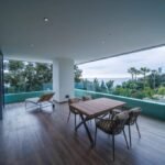 The interiors are immaculately balanced, centred around a sweeping open-plan living and dining area that opens onto multiple terraces. Here, floor-to-ceiling panoramic windows invite sea breezes and golden light into every corner. The Italian-designed kitchen is both a showpiece and a chef’s haven, perfect for the inspired home chef, features state-of-the-art Miele appliances and refined finishes that reflect the home’s commitment to quiet luxury. Adjacent living spaces and terraces offer an abundance of options for entertaining, lounging, and simply enjoying the picturesque and panoramic view.
