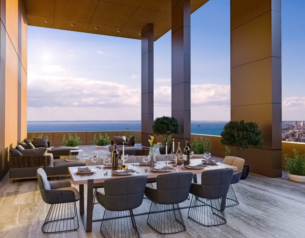 This apartment is located just steps away from the beautiful azure coastline of Limassol, taking island-living to a whole new level. Surrounded by other five-star luxury hotels, designer boutiques, first-rate restaurants and cafes, residents can take advantage of all that Limassol has to offer. From the sandy, Blue Flag beaches to the bustling city life for which Limassol is famous, there is no better place to truly realise your Mediterranean dream. Right in the middle of one of Limassol’s most elite neighbourhoods with the best of the city – and the rest of the island – within easy reach. It is located close to different establishments like high end dining restaurants, golden beaches, fascinating historical sites and excellent international private schools, residents are truly spoilt for choice. The island’s two international airports in Paphos and Larnaca, are just a short drive away. Bold, iconic and luxurious residential apartment which raised the bar and set new standards in urban architecture in Cyprus. The state of the art, 27-storey residential tower is the third tallest in Limassol and offers a platinum level of island living to discerning residents seeking quality, beauty and exclusivity. A proudly modern building that rises high into the cloud and adorned with the lush, tropical greenery of its soaring Sky Gardens. Amenities The warmth of home and the comforts of a world-class hotel are what make your residency a dream come true. Residents have access to hotel-grade facilities, including an outdoor swimming pool, open-air hot tub and children’s pool with a deck area and gazebo lounges and an open air terrace. Fitness enthusiasts can make use of the fitness centre, tennis courts and jogging route, as well as the sauna and steam room and massage room. Exclusive residents-only areas include residents’ lounge, co-working centre, sky gardens and private event room. The residents have access to a team of highly skilled professionals who will cater to their every request. 24/7 front desk and security personnel are on hand to manage your day-to-day needs, and residents also have access to storage rooms and e-car charging stations. A range of additional services are available upon request, whether you need travel itinerates planned out or restaurant reservations made, housekeeping and maintenance for your homme, or pet-sitting, car washing, and babysitting. Health and wellness services, including personal training and massage treatments, can also be arranged. Apartment Each exquisitely designed residency is perfectly positioned to allow uninterrupted views. Featuring one, two and three-bedroom apartments, as well as four bedroom duplexes. Combined premium aesthetics with elevated comfort and high functionality. Large, floor to ceiling windows allow an abundance of natural light to stream in, with the sapphire blue waters acting as a picture-perfect backdrop against the warm elements of the interiors. Constructed with generous proportions, using top quality building materials and finished to the highest of standards, boasting top-of-the-line appliances and technologies. They feature comfortable, open plan living areas that extend onto large, ample balconies with glass railings that serve up beautiful views. Stylish bedrooms provide a tranquil haven, thoughtfully decorated with a warm, cosy approach. Kitchens are bright and spacious, offering a well-equipped workspace.